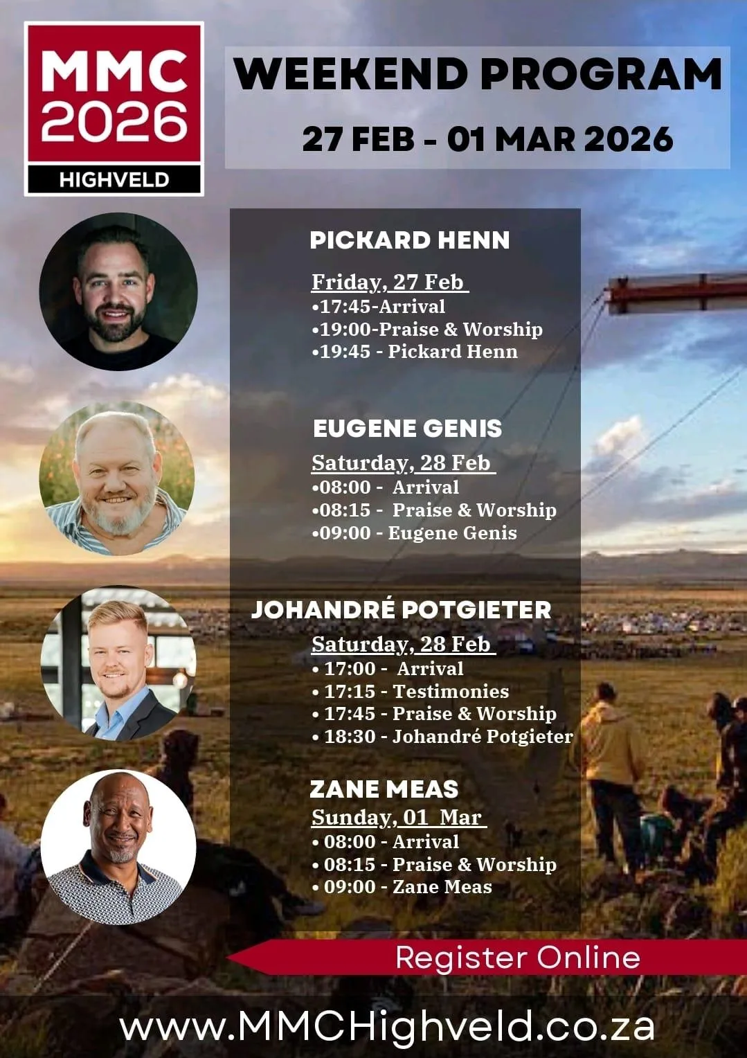 📅 The event takes place 27 February – 1 March 2026 (Friday to Sunday) on the Highveld.